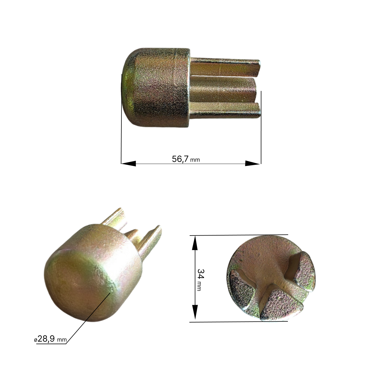 Изготавливается переходник из прочных и износостойких материалов, таких как сталь или специальные сплавы, что гарантирует высокую устойчивость к нагрузкам и деформациям. Верхний переходник диаметром 34 мм подходит для большинства стандартных трещоток и может использоваться как в ремонтных целях, так и при модернизации натяжных систем.