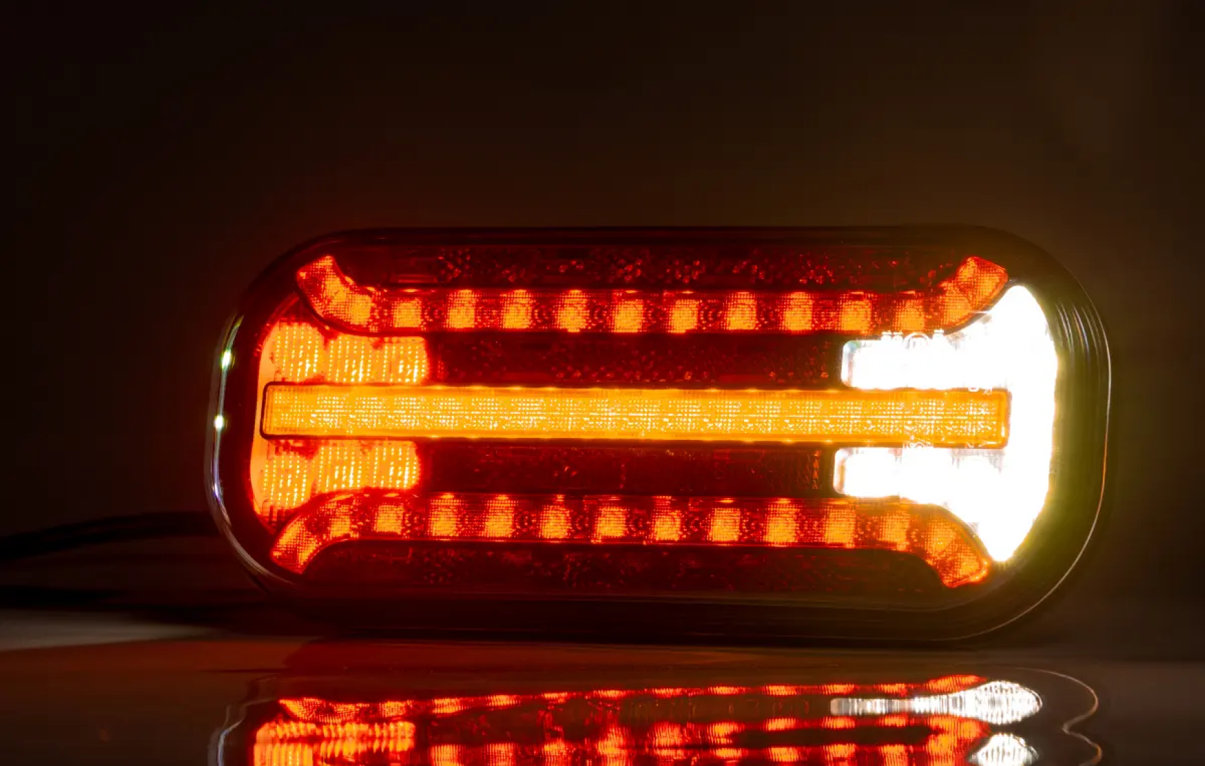 Сучасний світлодіодний ліхтар із розширеним функціоналом, призначений для вантажівок, причепів та напівпричепів. Забезпечує відмінну видимість і безпеку на дорозі за будь-яких умов. Ліхтар задній 5-функціональний світлодіодний LED 12–30В з габаритним світлом, протитуманним світлом, СТОП-сигналом, динамічним покажчиком повороту, без підсвітки номерного знака та зі світловідбивачем, провід 1 м.